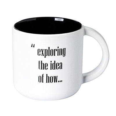 Kubek reklamowy z białym, matowym szkliwem na zewnątrz i kolorowym, błyszczącym wnętrzem. Proste, cylindryczne ścianki umożliwiają nanoszenie bardzo dużych i rozbudowanych nadruków reklamowych. Cechą charakterystyczną tego fasonu jest niepowtarzalny kształt uchwytu. Kubek o bardzo dużej pojemności.