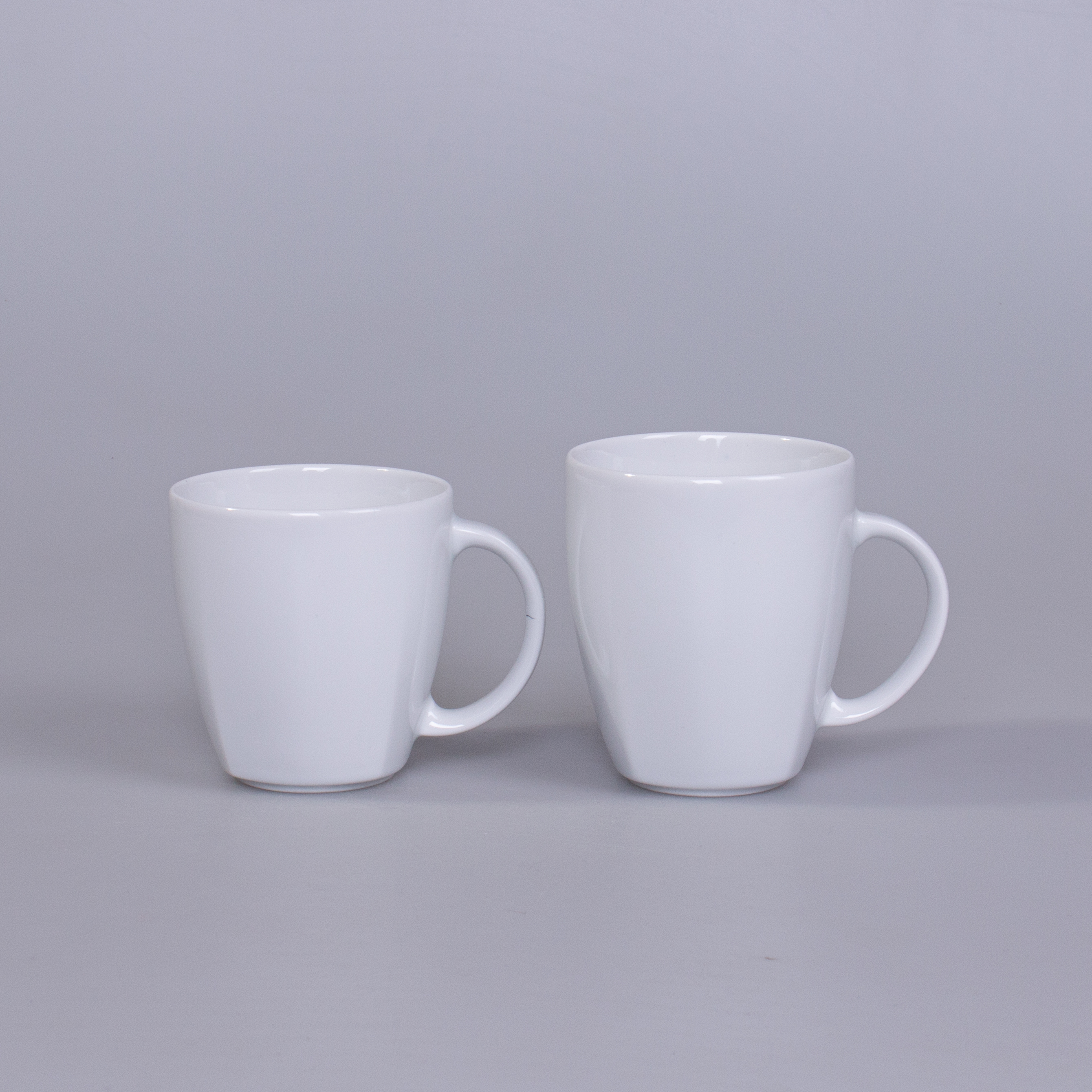 Porcelanowy kubek reklamowy dostępny w dwóch wersjach rozmiarowych. Cechą charakterystyczną tego fasonu są delikatne krawędzie widoczne w jego dolnej części.