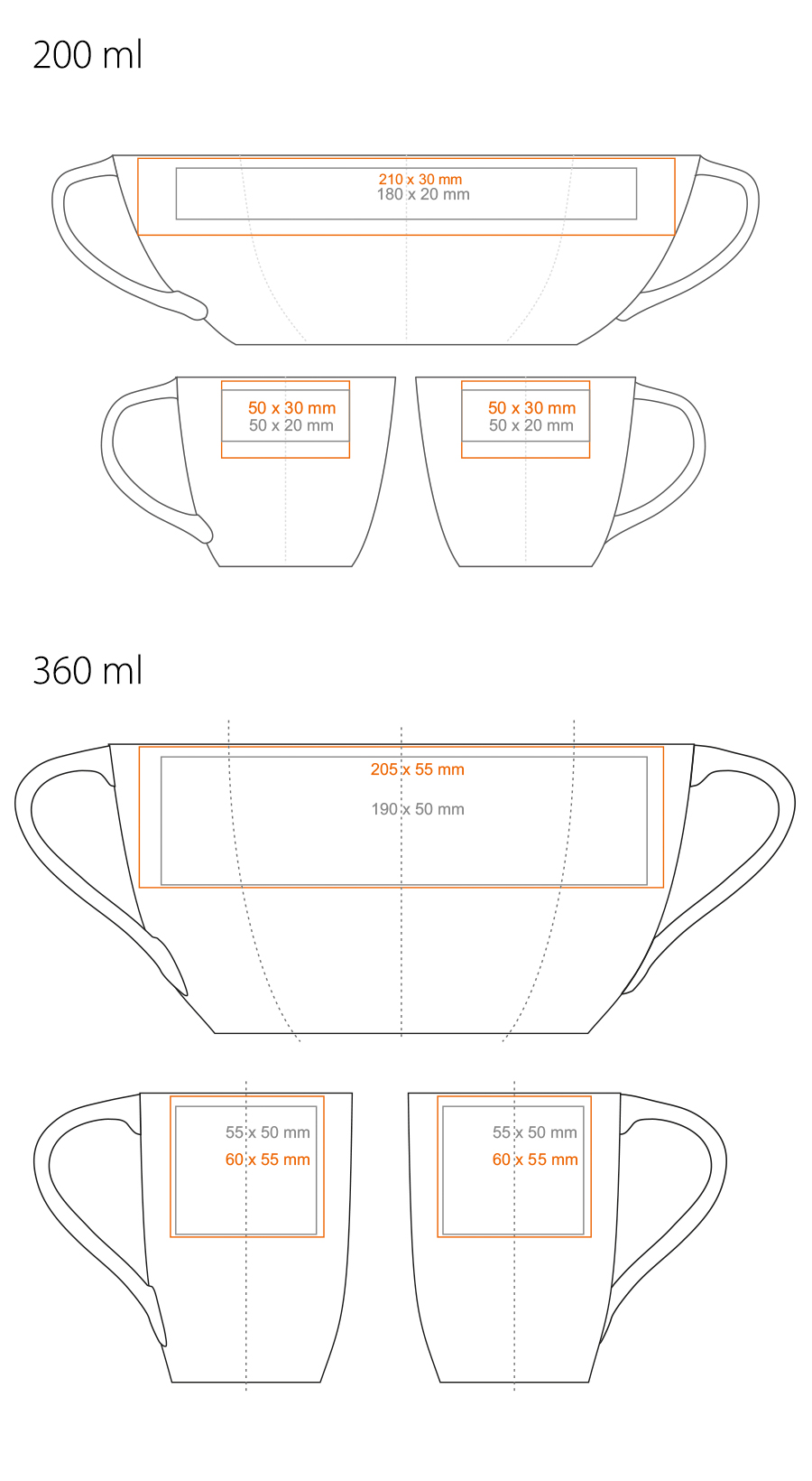 * W przypadku projektów wybiegających poza standardową powierzchnię nadruku prosimy o kontakt z działem handlowym.