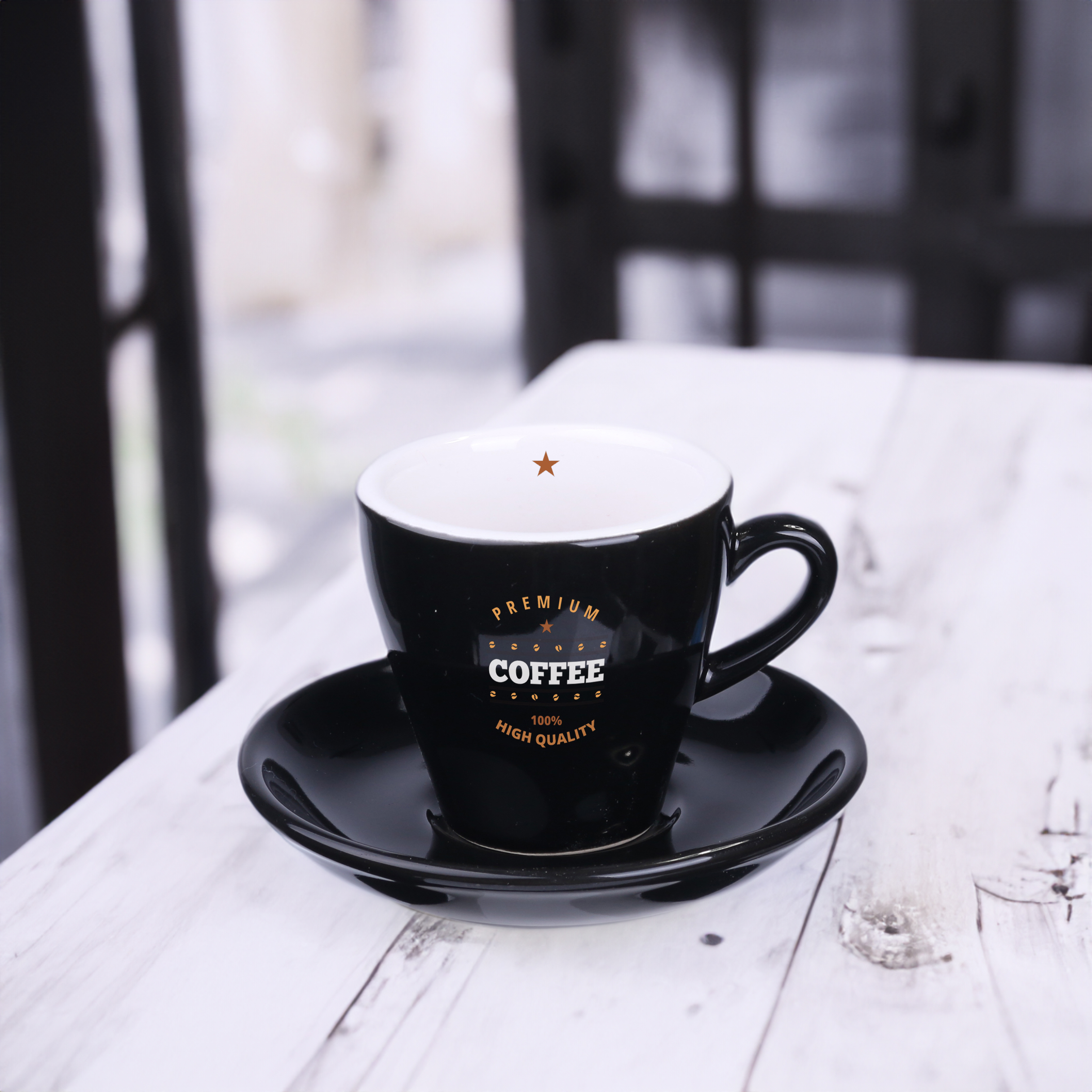 Mocna fuzja dla idealnego espresso. Modny i charakterystyczny zestaw do espresso. Filiżanka z białym wnętrzem, wyróżni markę i wyniesie ją na szczyt.