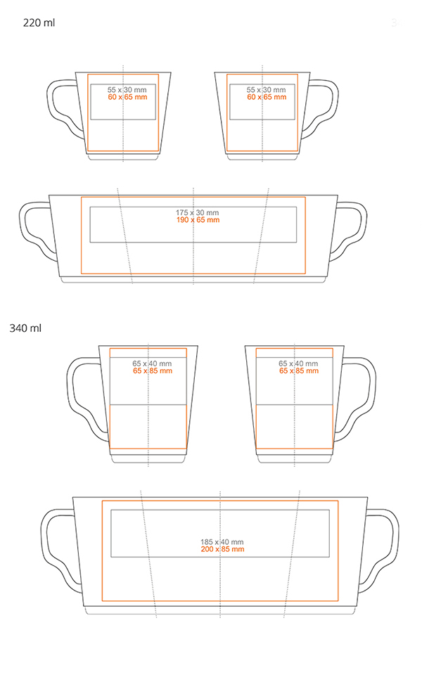 * W przypadku projektów wybiegających poza standardową powierzchnię nadruku prosimy o kontakt z działem handlowym.